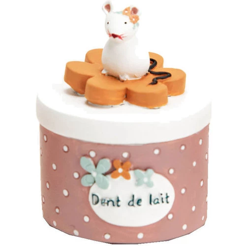 Boite à dents de lait souris – Parme Résine Dim : Hauteur 6 cm – Diamètre 5 cm