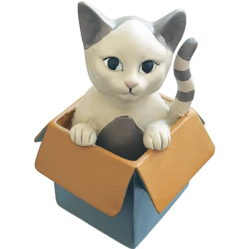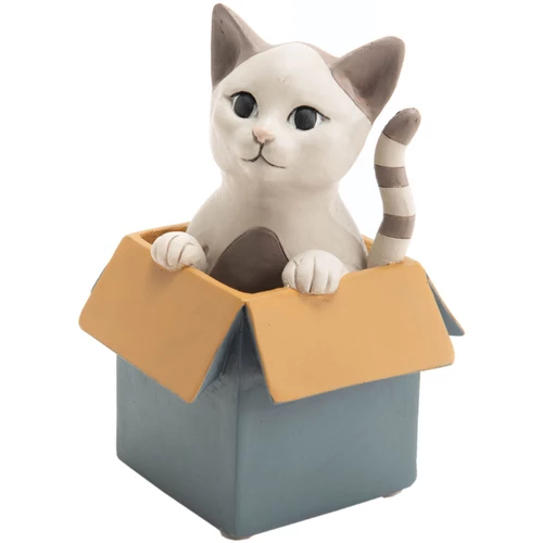 Chat dans son carton de décoration en résine Résine Hauteur 15 cm – Largeur 10 cm – Profondeur 10 cm