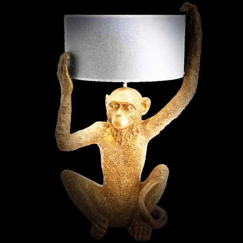 Lampe de table Singe 57 cm En polyrésine Abat jour en coton noir Hauteur 57 cm x Largeur 35.5 cm x Profondeur 30 cm Fonctionne sur secteur, prise Européenne Ampoule E27-40 W non incluse