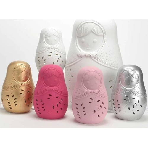 Lampe à poser blanche Poupée Russe En porcelaine Dim : 46 x 28 x 28 cm Fonctionne sur secteur, prise Européenne Ampoule E14 max 8 W non fournie 220-240V-50Hz