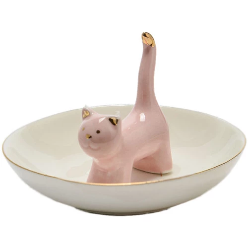 Statuette porte-bijoux Chat Rose Porcelaine Hauteur 7 cm – Ø 10.5 cm