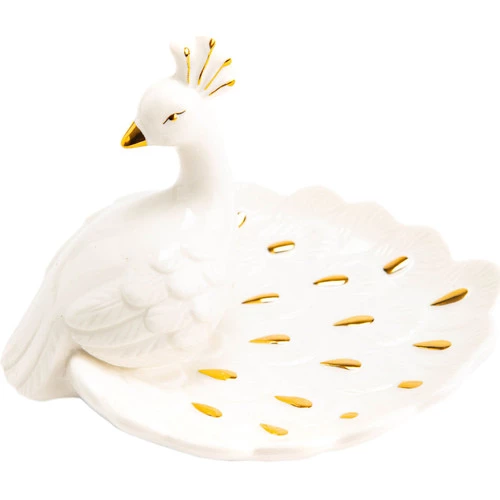 Statuette porte-bijoux Paon Blanc et Or Porcelaine Hauteur 12 cm – Largeur 16 cm – Profondeur 14 cm
