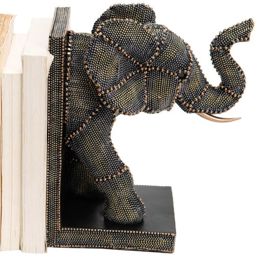 Stop-livres Elephant en résine Polyrésine Dimensions des 2 parties réunies : Hauteur 26 cm – Largeur 36 cm – Profondeur 12 cm Pour faire tenir bien droit tous vos bouquins sur vos étagères tout en ajoutant un soupçon de déco dans la pièce, rien de tel qu’un serre-livres.